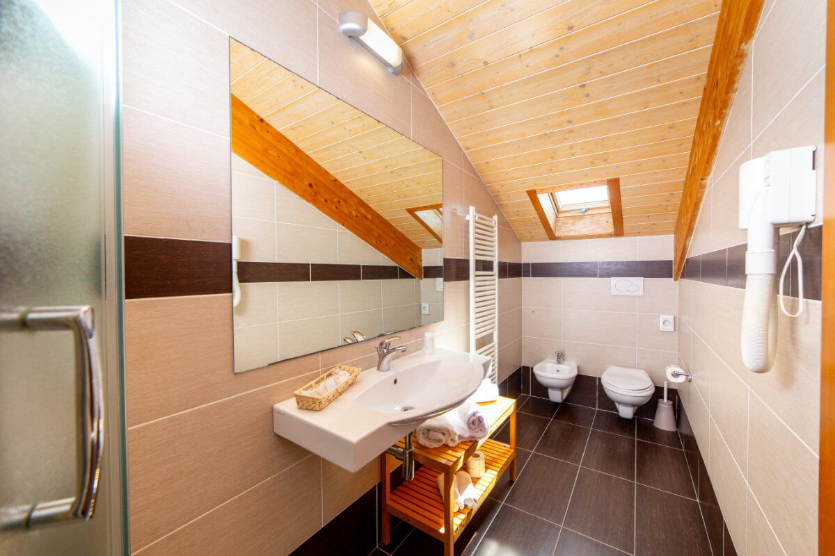 For a vacation immersed in a unique atmosphere and a typical with exposed beams and ceiling window attic, our room with new parquet floors makes a private bathroom with shower-box and hair-dryer.